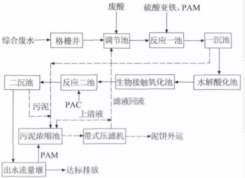 混凝沉淀+水解酸化+接觸氧化組合工藝